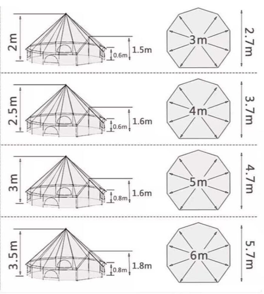 - The tent includes strong central steel poles, galvanized frame pipes, nylon rope, pegs, etc.